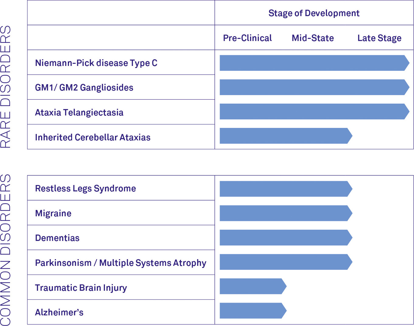 IntraBio’s platform technology results from decades of research and over $350 million of investments from organizations worldwide. Our pipeline has broad applicability to be developed as novel treatments for rare (“orphan”) and common neurological disorders.